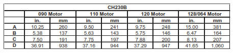 CH230B 23,000 lbs (10,430 kg) 955 lbs (433 kg)