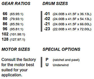 Below models represent only a small number of gearbox, motor and drum size configurations.