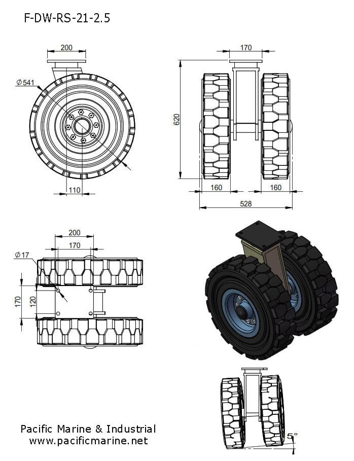 2.5 Metric Ton / 5,500 Pounds Capacity Per Caster
