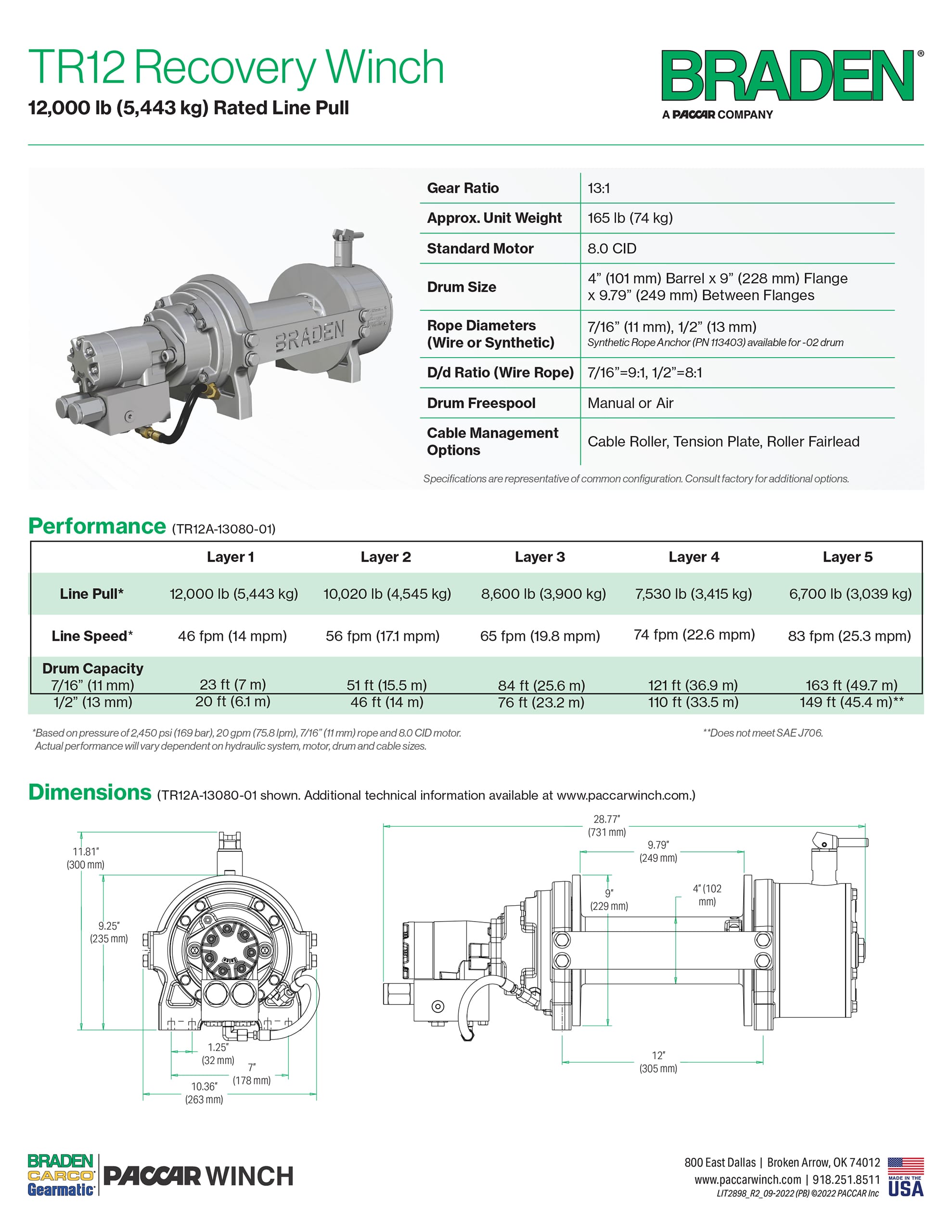 The TR Series planetary winches are designed for stand alone use on trailers, as well as towing and self-recovery applications. The highly efficient and rugged design of the gear train allows for fast line speeds and continuous winch operation,. With versatile mounting options and line pull ratings from 12,000 lb. to 30,000 lb., TR Series winches are easily adaptable to multiple applications.
