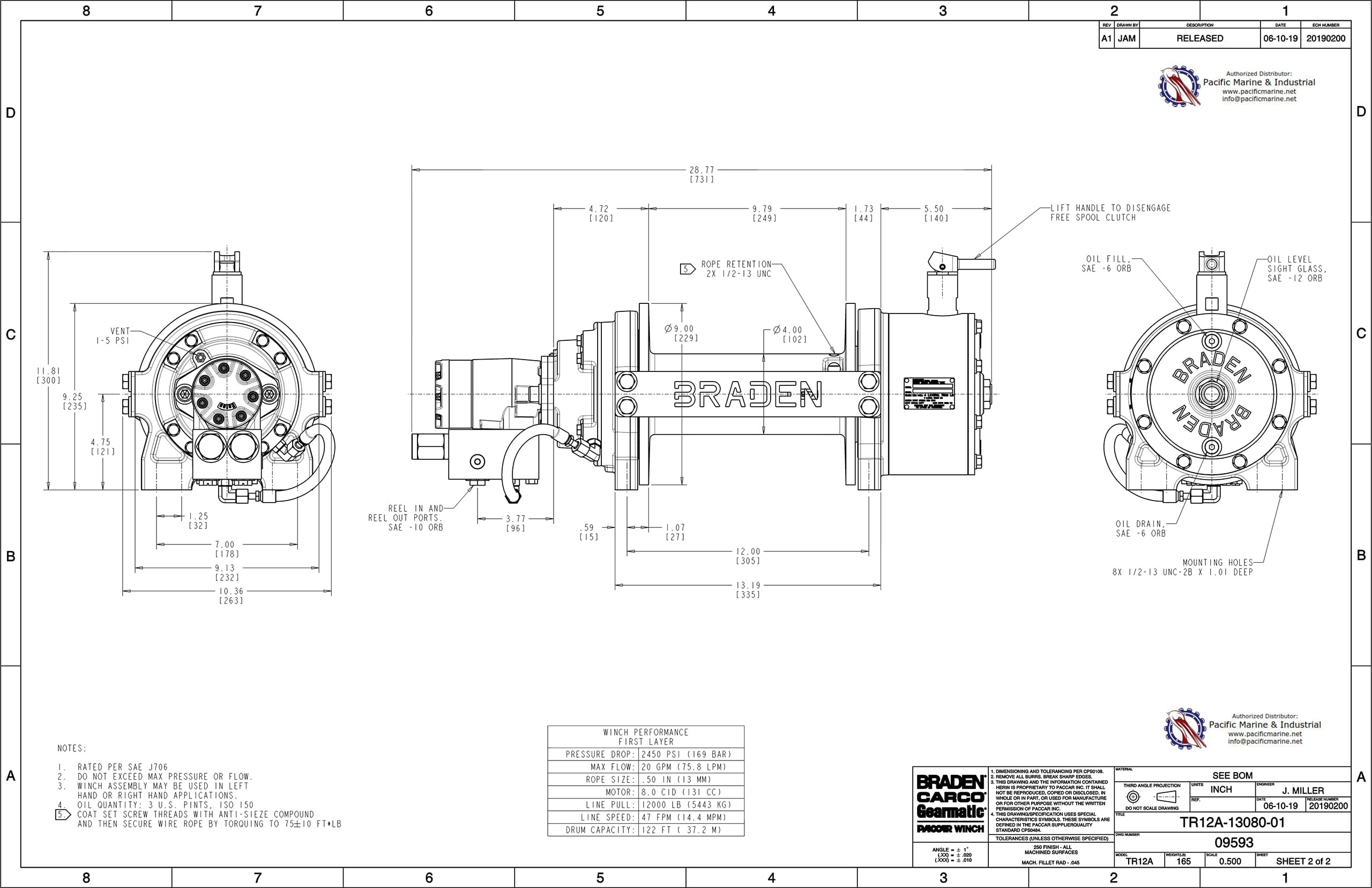 If you need to alter the Hydraulic Pressure or Flow or the Wire Size contact info@pacificmarine.net for performance chart.