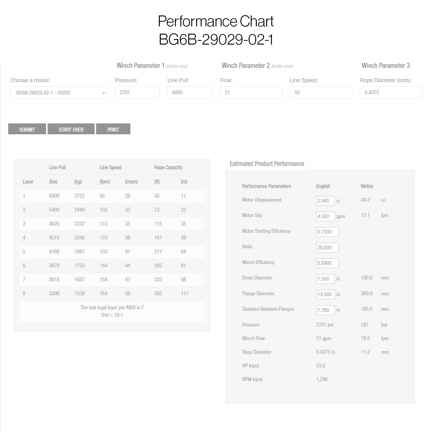 If you need to alter the Hydraulic Pressure or Flow or the Wire Size contact info@pacificmarine.net for performance chart.
