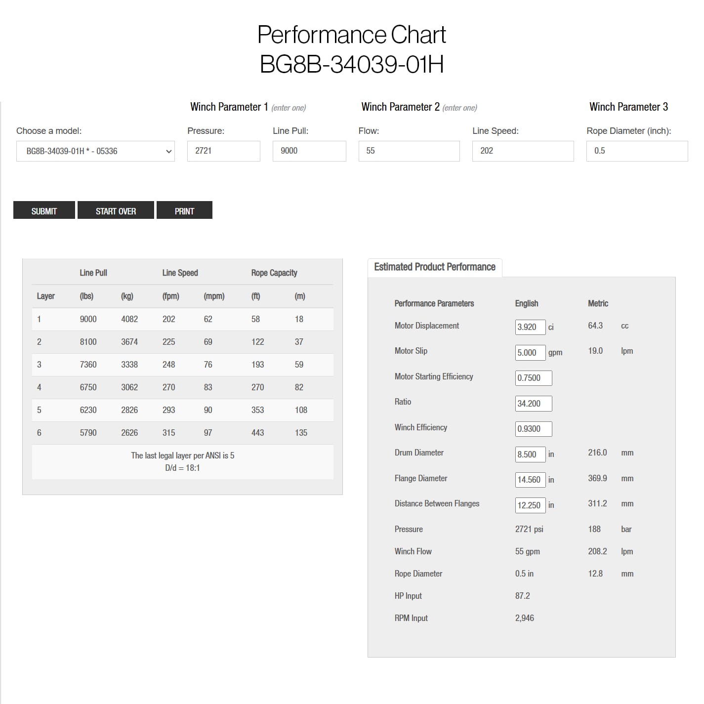 If you need to alter the Hydraulic Pressure or Flow or the Wire Size contact info@pacificmarine.net for performance chart.