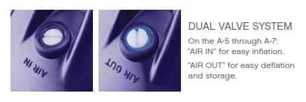 - Dual valve inflation/deflation system for sizes A-5, A-6 and A-7