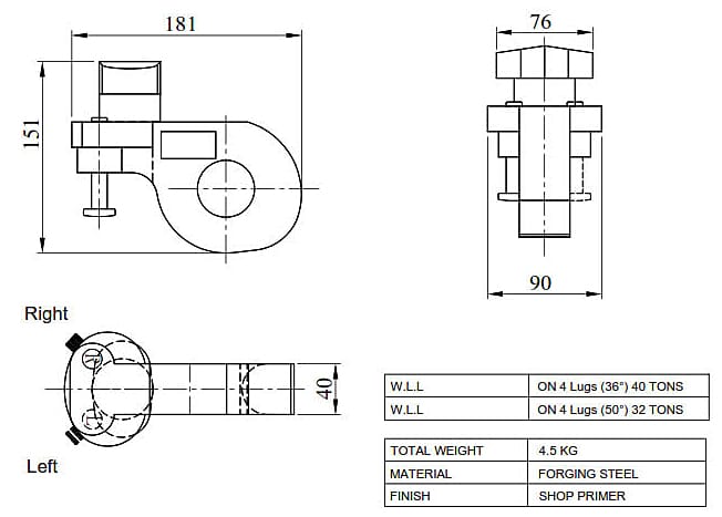 Working Load Limit: 36 Degrees: 40 Metric Tons