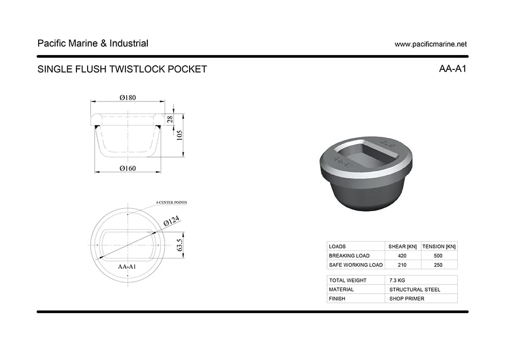 Single Flush Container Foundation - ISO Ocean Shipping Container - Part: AA-A1