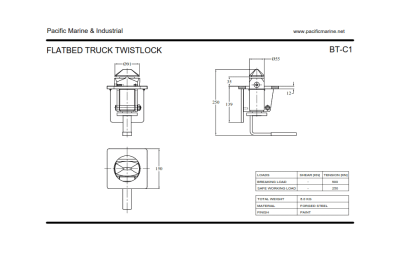 The BT-C1 is PM&I's ISO shipping container twistlock for use with flat bed trucks.