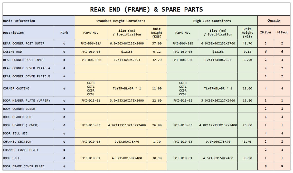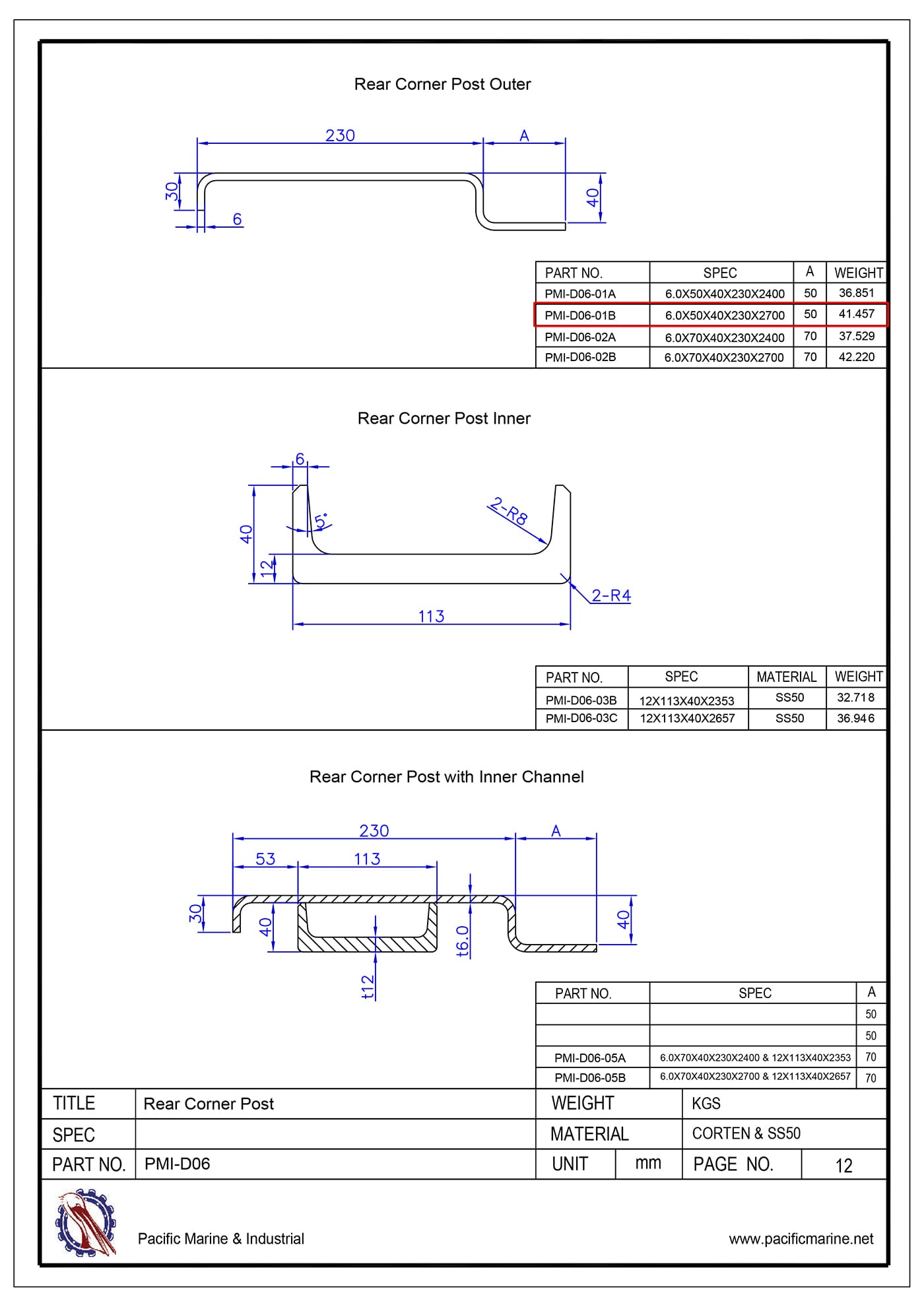 Part #: PMI-D06-01B - Shipping Container Rear Corner Post (Outer) 2700 for High Cube Containers