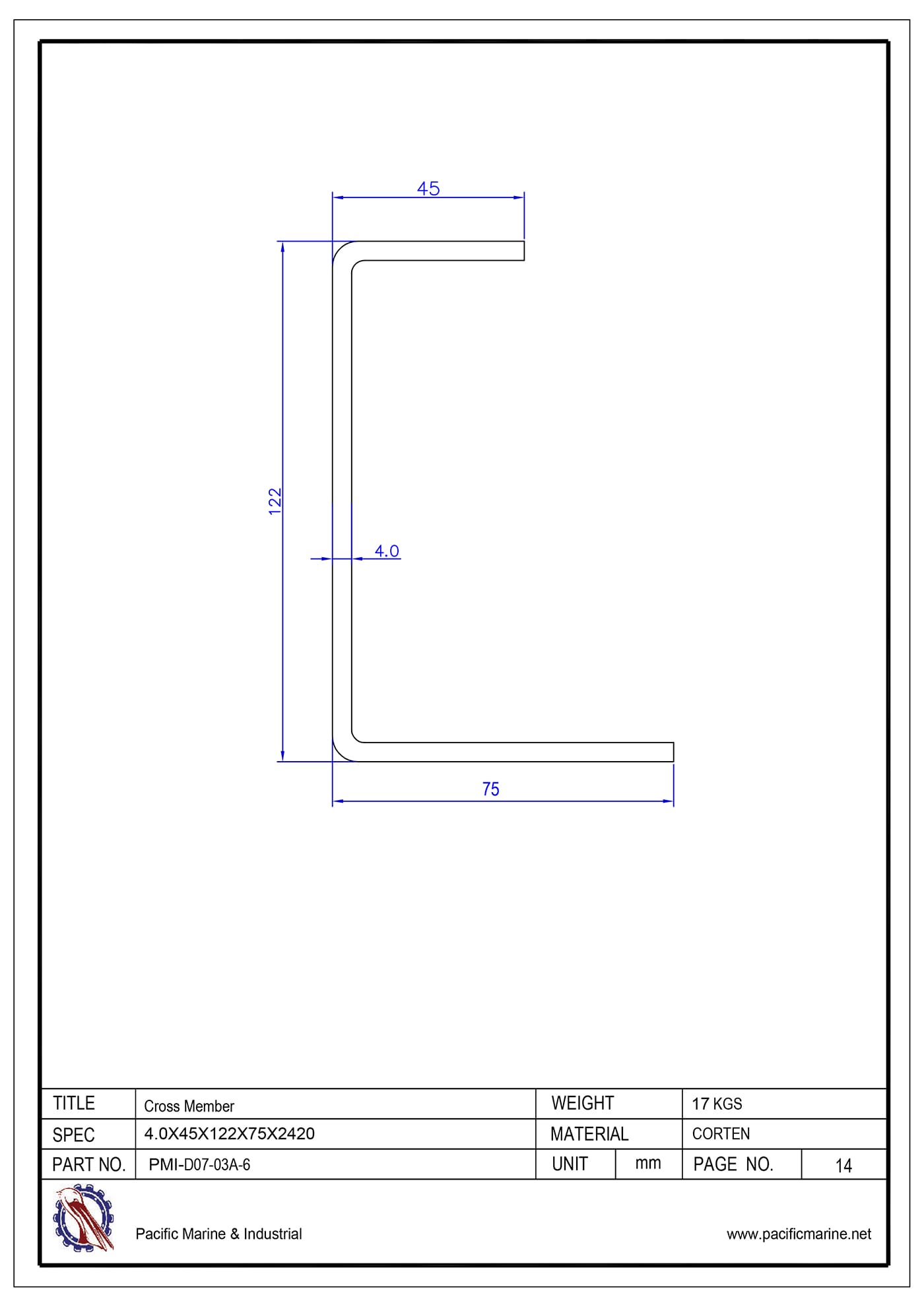 Size (mm) Specification: 4.0 x 45 x 122 x 75 x 2420