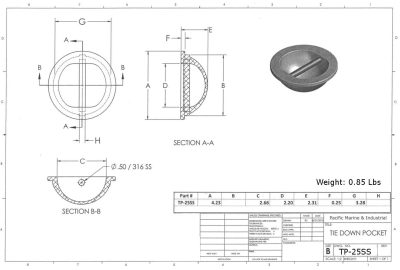 Aluminum Tie Down Point 4 1/4″ Diameter Flush Round w/ Stainless Cross Bar: TP25SS