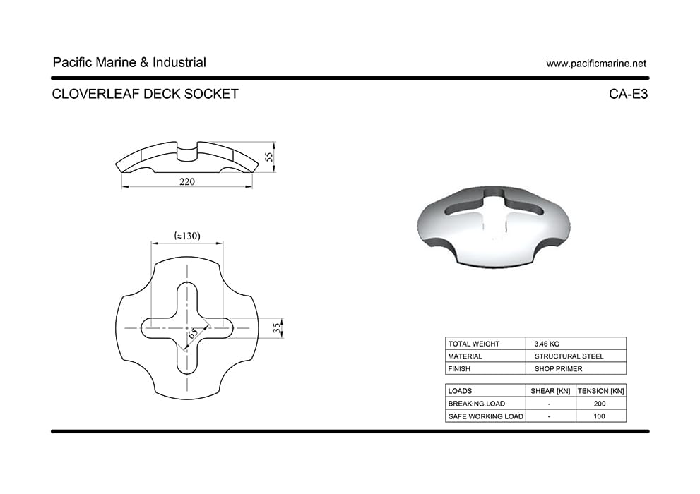 Raised Cloverleaf Cargo Lashing Point - For Elephants Foot Fitting - Part: CA-E3
