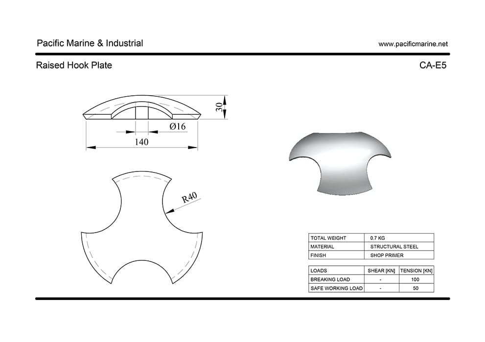 Raised Lashing Plate - For Hooks - Part: CA-E5